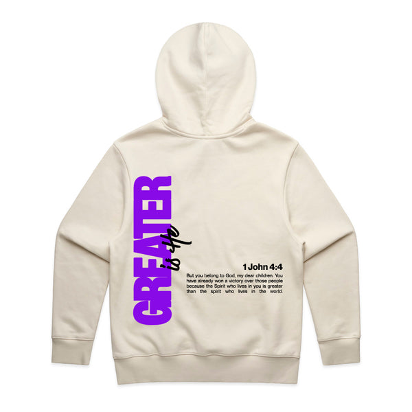 GREATER IS HE - Ecru Hood